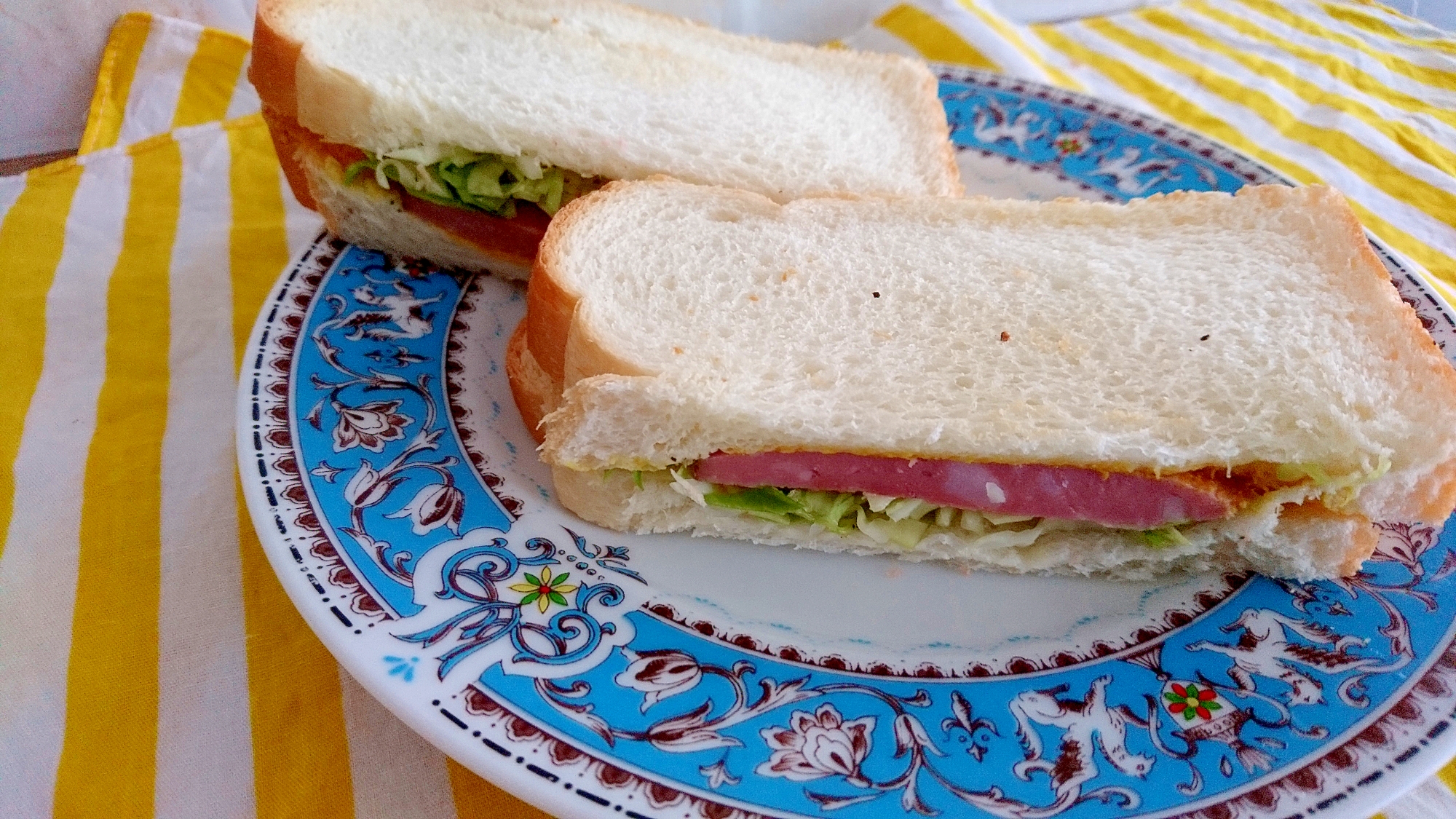 端っこまでハムで満足度アップのハムサンド あさこ食堂